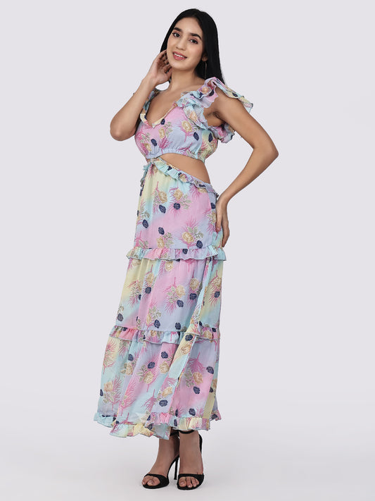 Pastel Bloom Chiffon Cut Out Maxi Dress