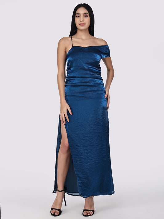 Ocean Tides Ruched Satin Slip Dress Sapphire Blue