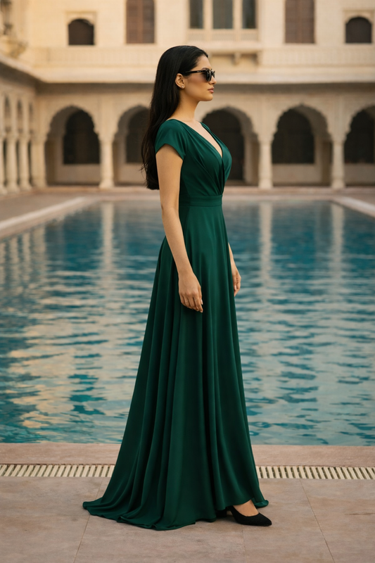 Lustrous Silk Wrap Gown-Green